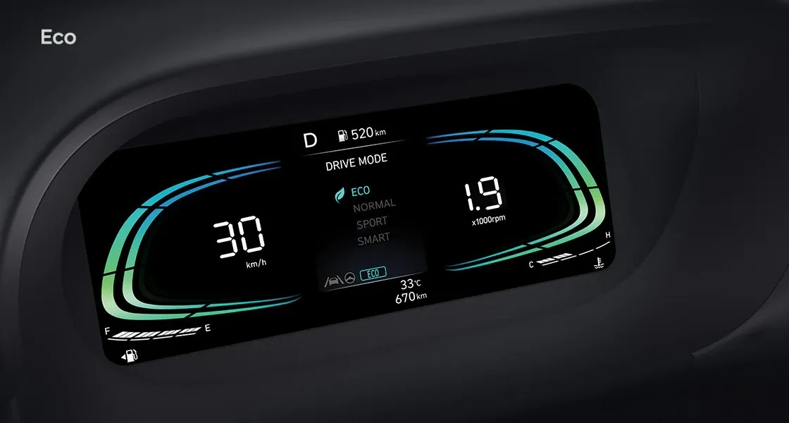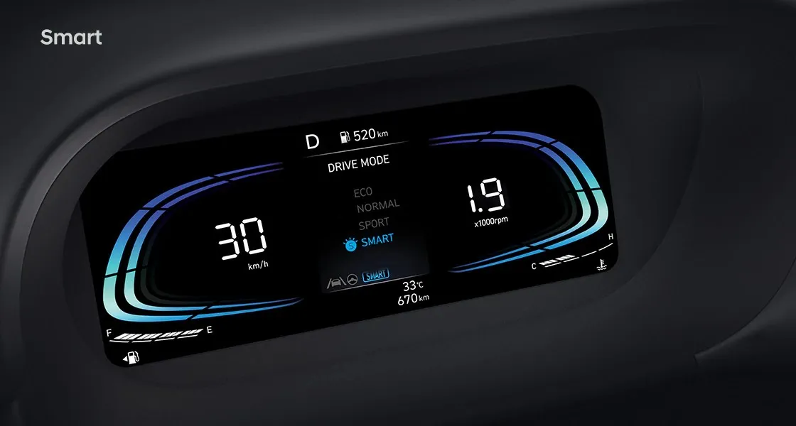 Hyundai STARGAZER X có bốn chế độ lái. Normal cho việc lái xe hàng ngày, Eco tiết kiệm nhiên liệu, Sport để vận hành xe tối đa và Smart để điều chỉnh khoảng thời gian chuyển số tự động dựa trên kiểu lái xe.